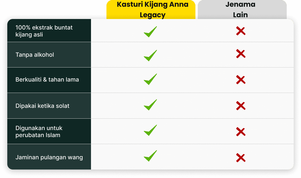 Ketiga: Ustaz bantu tuan puan sehingga berjaya selesaikan masalah tuan puan dengan amalkan wangian kasturi kijang kesukaan Baginda Rasulullah S.A.W ni. Sekiranya Ustaz tak berjaya bantu, produk ni tidak mendatangkan hasil, kami akan bagi JAMINAN WANG DIKEMBALIKAN PENUH.